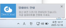 업데이트 알림에서 새 버전의 DirectCloud Drive로 업데이트하는 단계는 다음과 같습니다.