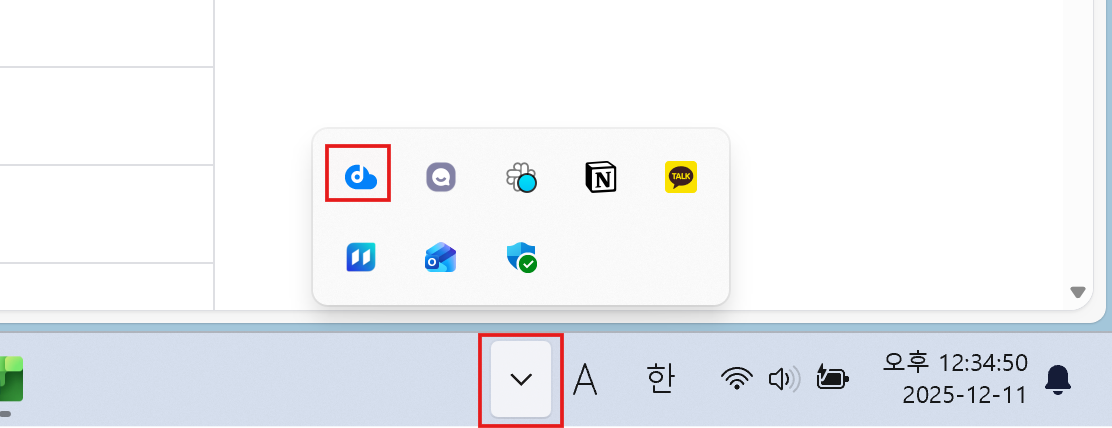 PC의 작업 트레이에서 DirectCloud 드라이브 아이콘을 클릭합니다. DirectCloud 드라이브 설정 화면이 표시됩니다.
