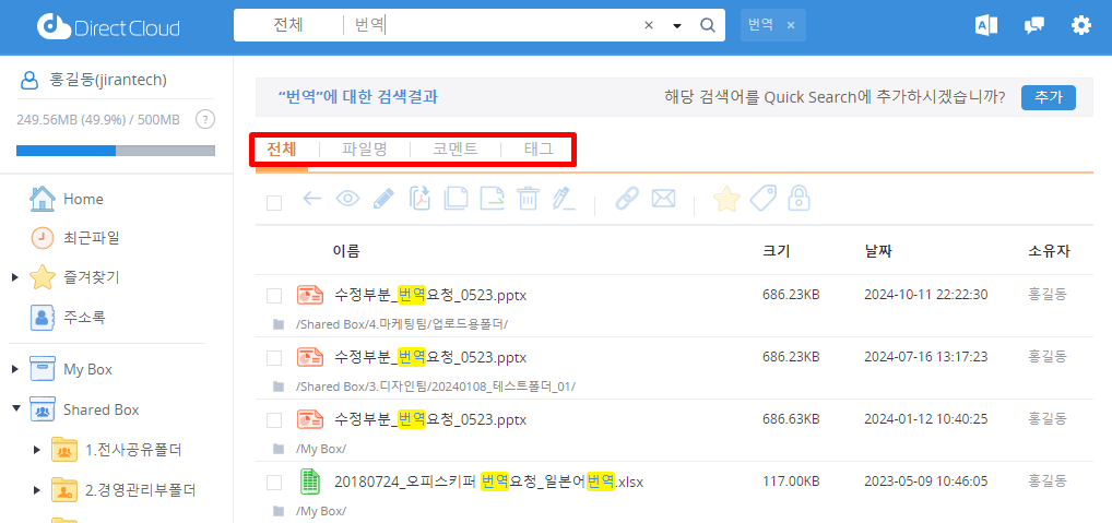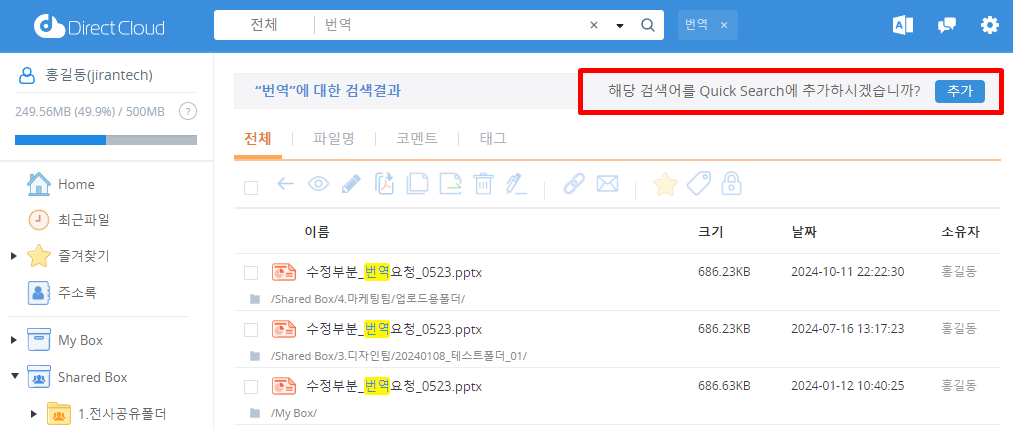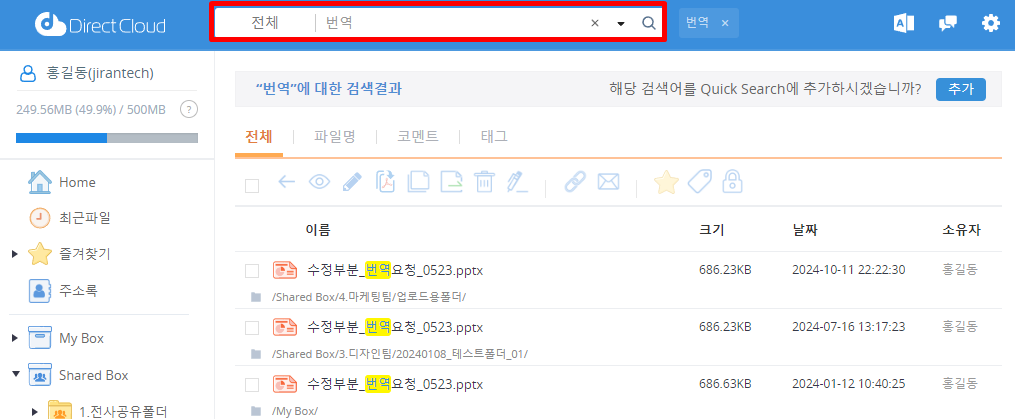 DirectCloud 드라이브에서 검색