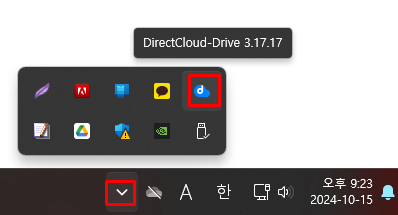 작업 트레이를 클릭하고 DirectCloud 드라이브 아이콘을 클릭합니다.