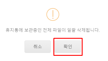 상단의 휴지통 비우기 버튼을 클릭합니다.