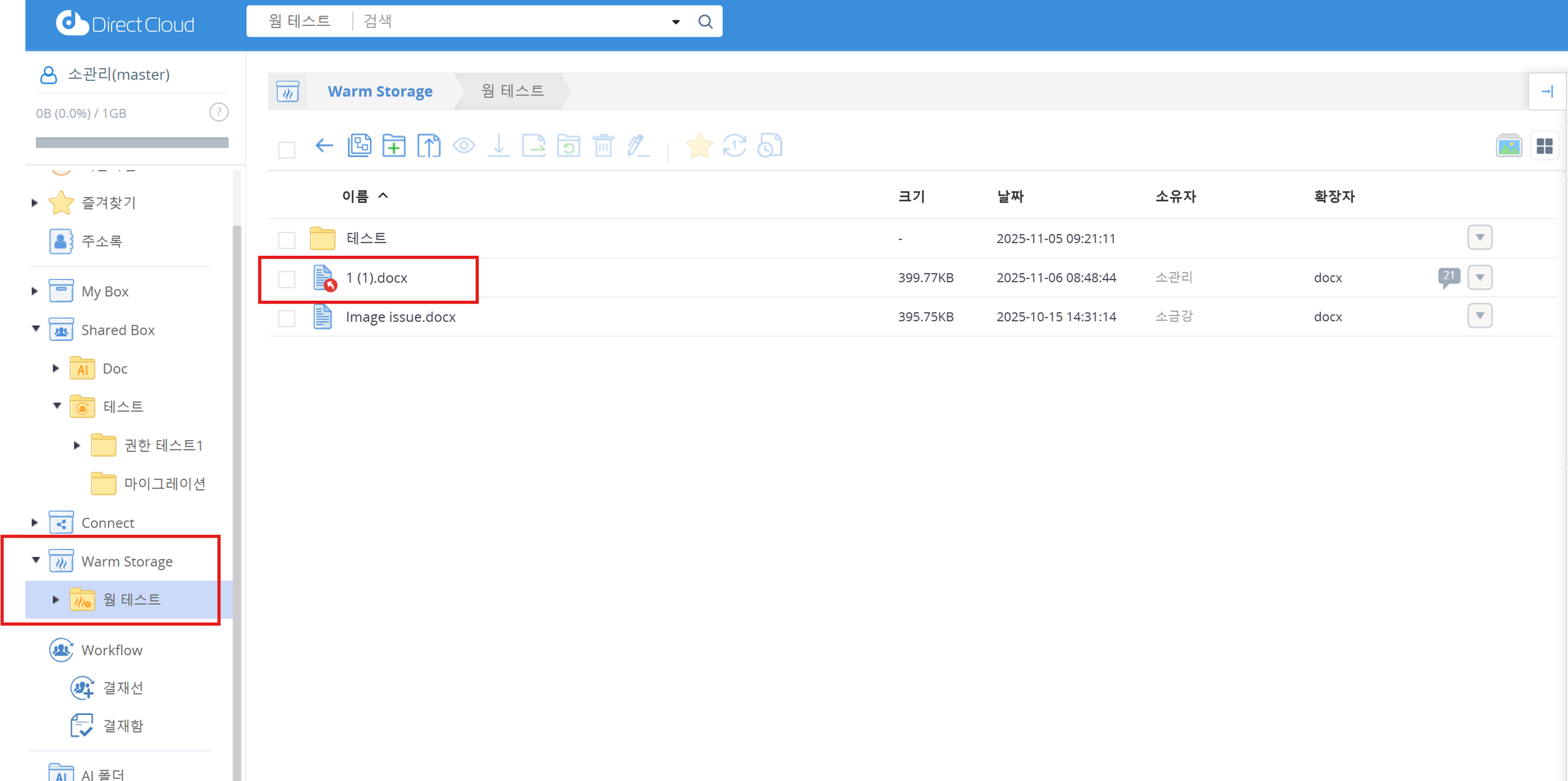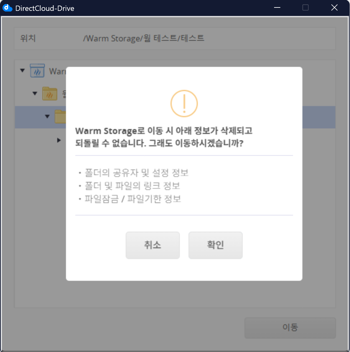 DirectCloud 드라이브에서 Warm Storage 사용