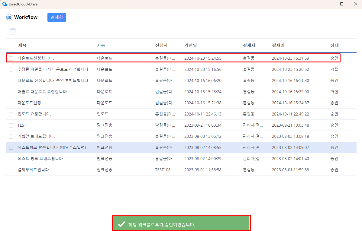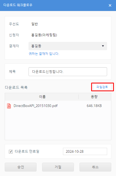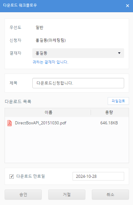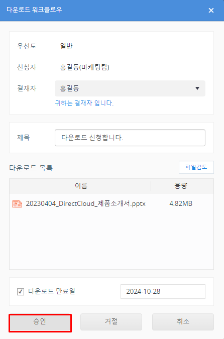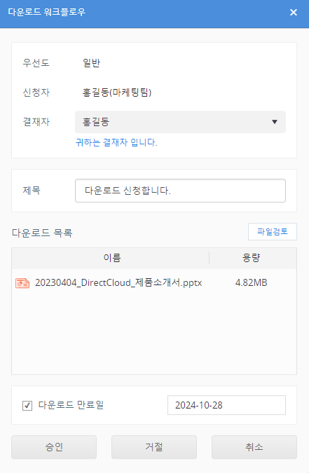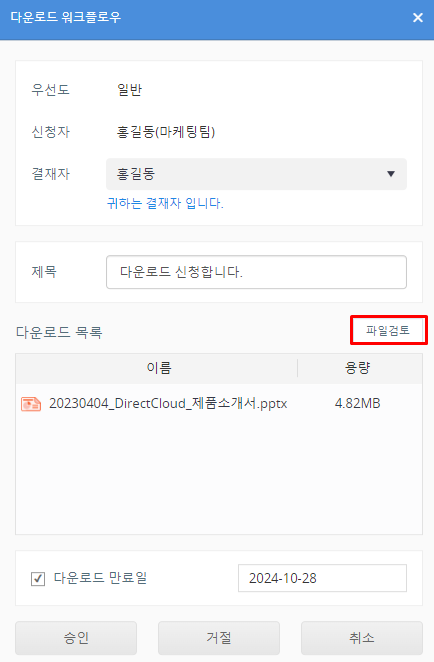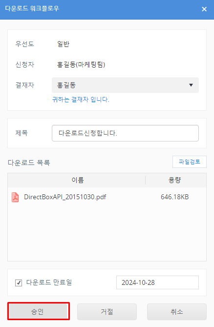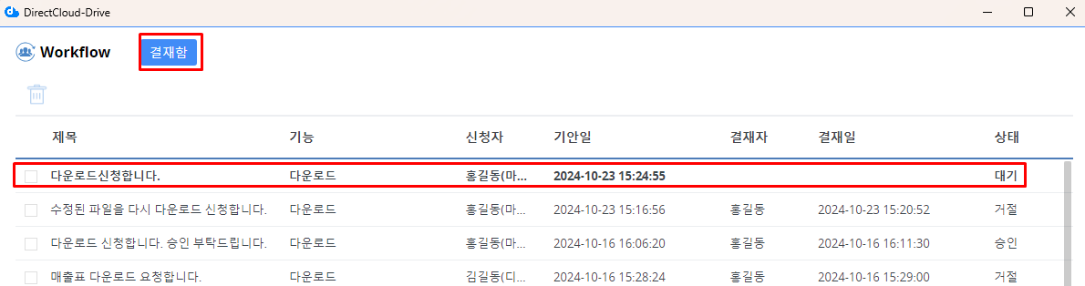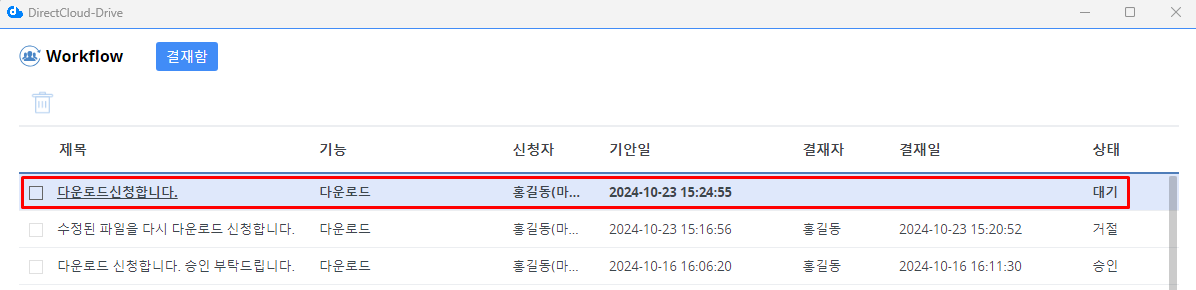 DirectCloud 드라이브에서 다운로드 신청 승인/거절