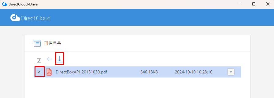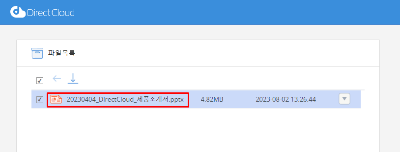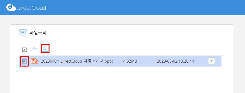 파일을 다운로드하려면 확인란을 선택하고 다운로드 버튼을 클릭합니다. 파일의 오른쪽 가장자리에 표시된 ▼ 버튼을 클릭하고 "다운로드"를 선택할 수도 있습니다.