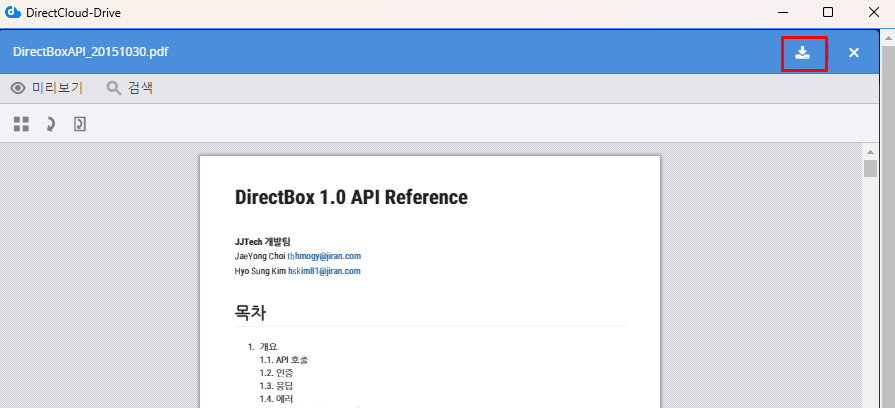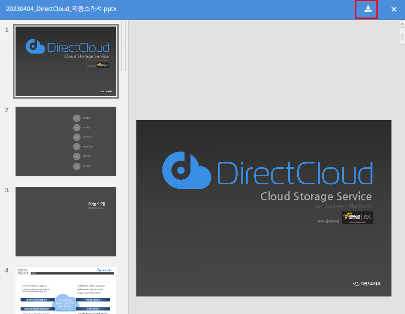 미리보기 화면에 파일이 표시됩니다. 이 화면에서 오른쪽 상단의 다운로드 버튼을 클릭하여 파일을 다운로드할 수도 있습니다.