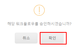 신청이 승인되고 '해당 워크플로우가 승인되었습니다.'라는 메시지가 표시됩니다. 또한 상태가 '승인'으로 변경됩니다.
