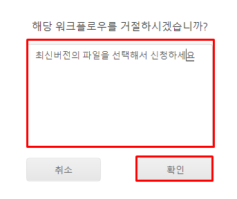 거절 이유를 입력하고 확인 버튼을 클릭합니다.