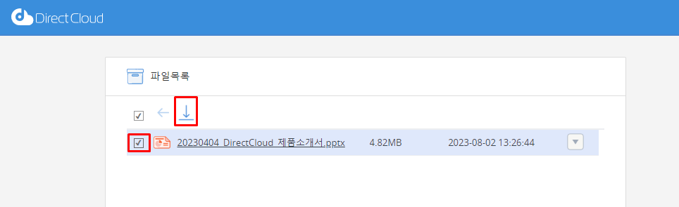 파일을 다운로드하려면 확인란을 선택하고 다운로드 버튼을 클릭합니다. 파일의 오른쪽 가장자리에 표시된 ▼ 버튼을 클릭하고 "다운로드"를 선택할 수도 있습니다.