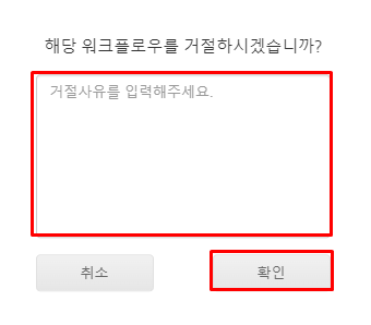 거절 이유를 입력하고 확인 버튼을 클릭합니다.