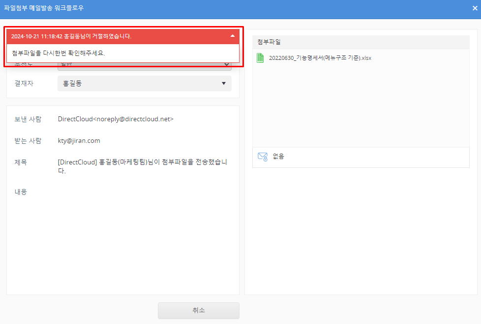 파일첨부 메일발송 신청이 승인/거절된 경우